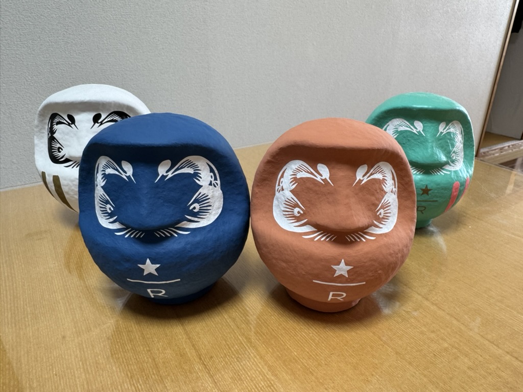 2026年の元旦には、STARBUCKS RESERVE® ROASTERY TOKYOへ行って、コーヒーを飲みつつダルマを買ってきました。今年のダルマは前にある青と赤、後ろのは2025年のものです。